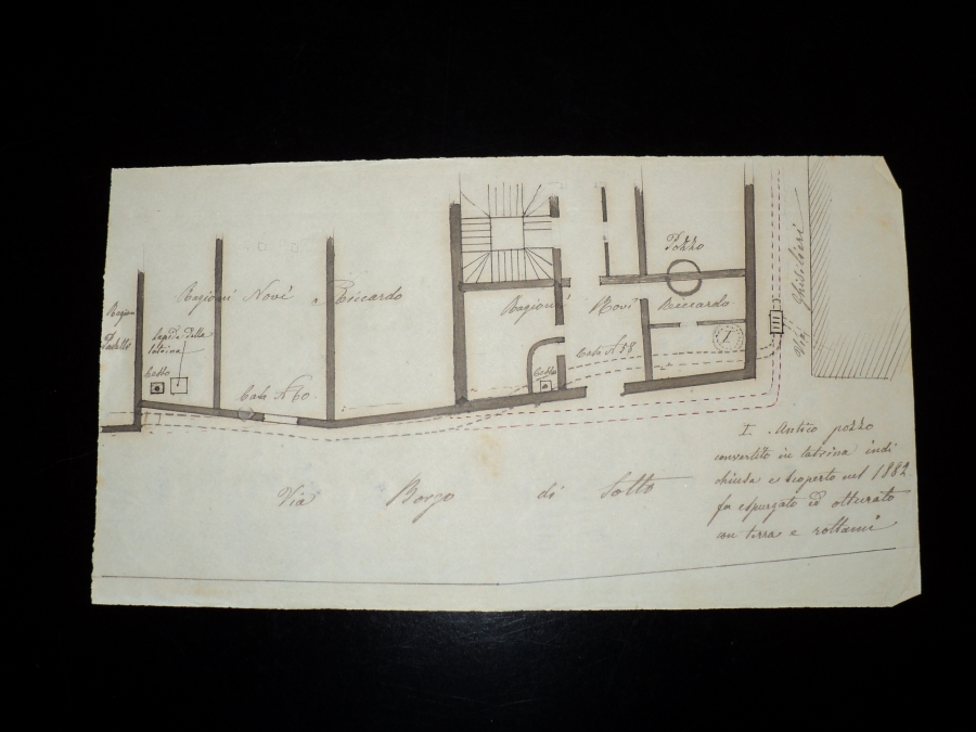 Antico pozzo tra le vie Ghisi[g]lieri e Borgo di Sotto Antico pozzo tra le vie Ghisi[g]lieri e Borgo di Sotto Ferrara, Istituto di Studi Rinascimentali, Archivio Giglioli, b. 113, fasc. 4