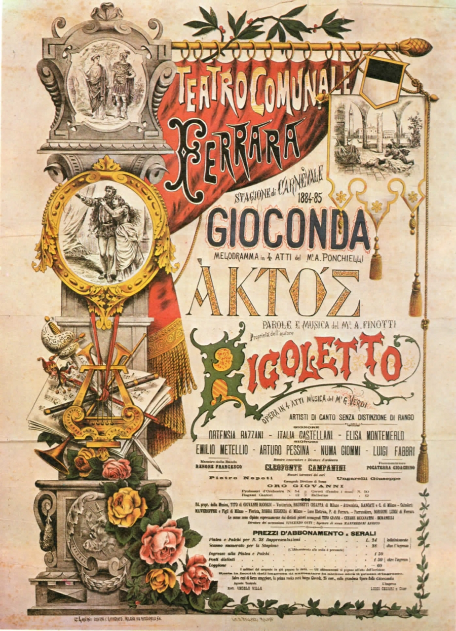 Vicenda più complessa e più duratura invece quella del teatro Bonacossi, anche questo sede storica dello spettacolo a Ferrara. Fatto costruire nel 1662 dal conte Pinamonte Bonacossi, il teatro era stato per tutto il Settecento la sede propria dello spettacolo musicale. Con una pianta originale a campana ed una dimensione sia del palcoscenico che della sala esigua, il Bonacossi all’inizio dell’Ottocento non risponde più alle nuove esigenze e ai nuovi gusti in materia di edifici teatrali. Così la struttura originale in legno viene ammodernata nel 1840 su committenza del conte Antonio Bonacossi. Si lancia quindi una vendita di azioni per l’acquisto dei nuovi palchi, mantenendo per i vecchi palchettisti il diritto di prelazione, così da poter finanziare i lavori per la nuova sala. La direzione del progetto viene affidata all’ingegnere comunale Giovanni Tosi, che si rifà alla pianta della sala del nuovo teatro Comunale, progettata da Foschini. Una pianta a ferro di cavallo dunque con quattro ordini di 19 palchi ciascuno – con l’eccezione del primo ordine con soli 18 palchi per far spazio alla porta centrale di ingresso. Il nuovo teatro in muratura viene infine corredato da altri ambienti di servizio, come sartoria, magazzino, luminaria, ecc. Il 13 aprile del 1846 si inaugura il teatro restaurato con l’opera buffa Il Columella di Vincenzo Fioravanti. Non si conclude però la vicenda restaurativa del Bonacossi nel corso del XIX secolo. Viene ripresa nel 1881 con l’introduzione dell’illuminazione a gas e dell’impianto di riscaldamento in tutti gli ambienti, oltre a vari altri lavori di ammodernamento, volti soprattutto a migliorare gli spazi per gli spettatori, con ristorante, caffè e locali per fumare ad ogni ordine di palchi. L’intento è quello di farne insomma una sala di compensazione e non concorrente rispetto all’attività del Comunale, con una forte impronta “sociale”, di spazio aggregativo: prova ne sia che le serate di veglioni mascherati, da ballo e le feste impegnano sempre più diffusamente il teatro.